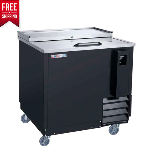 View full detailsCompass 36.75" Forced Air Bottle Cooler – Stainless Steel, Locking Sliding Lids, Built-In Bottle Opener, 115V