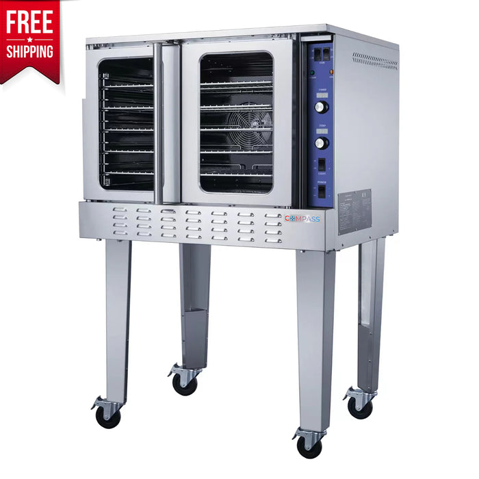 Compass C1COG Single Full-Size Gas Convection Oven – 54,000 BTU, Digital Controls, 5 Racks, Locking Casters