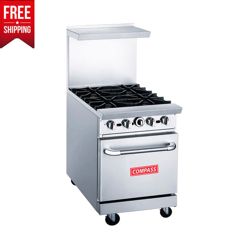 Compass DCR24 24" Gas Range – 4 Open Burners, Oven, Stainless Steel, Casters
