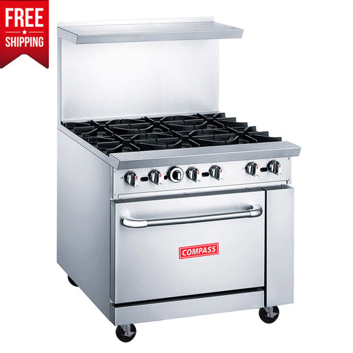 View full detailsCompass DCR36 36" Gas Range – 6 Open Burners, Oven, Casters, Stainless Steel
