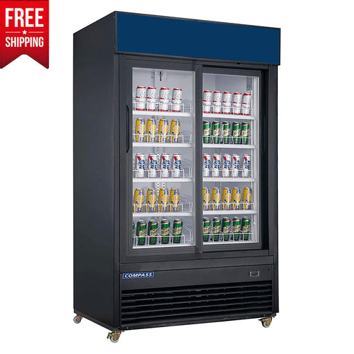 View full detailsCompass 47.25" Black Sliding Double Door Merchandiser Refrigerator