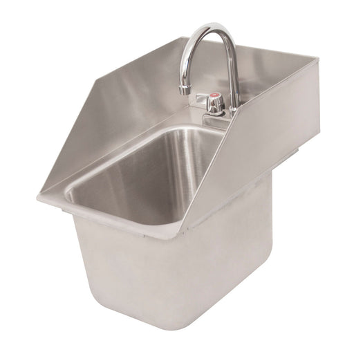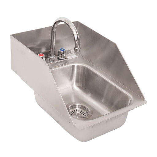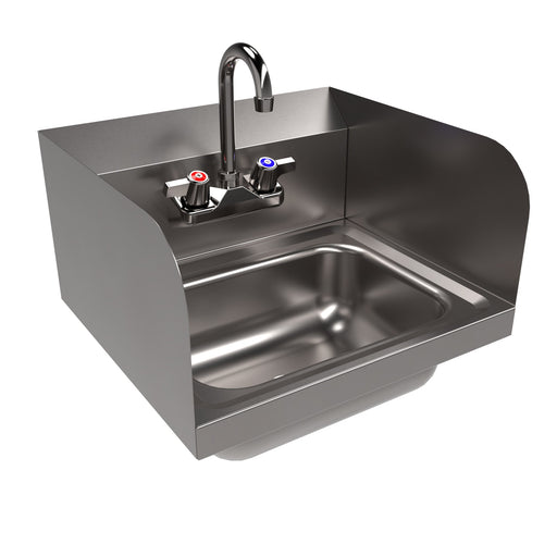 Special Value Hand Sink with 7-3/4" side splashes, wall model, 14" wide x 10" front-to-back x 5" deep bowl, 304 stainless steel construction, sin...
