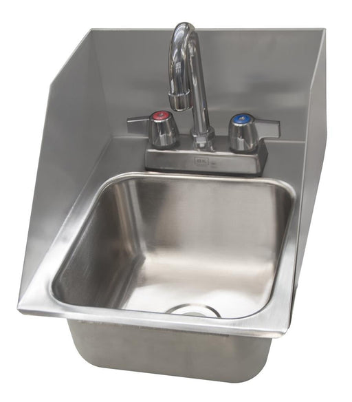 Special Value Hand Sink with 7-3/4" side splashes, wall model, 9" wide x 9" front-to-back x 5" deep bowl, 20 gauge 304 stainless steel, 4" OC spl...