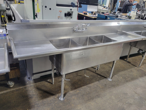 USED 3 COMP SINK 101" X 28" WITH 2 DRAINBOARD