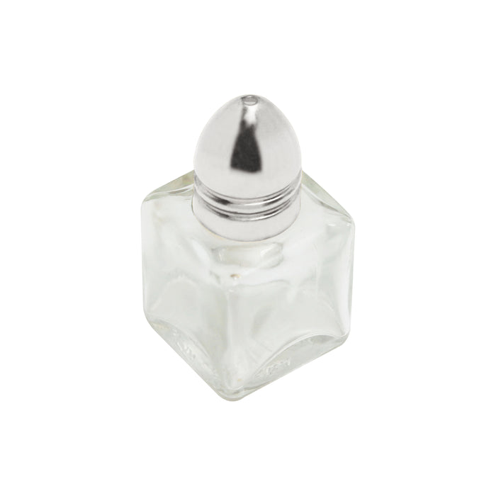 Salt/Pepper Shaker, 1/2 oz., 3"H, glass cube base, stainless steel bullet cap, dishwasher safe